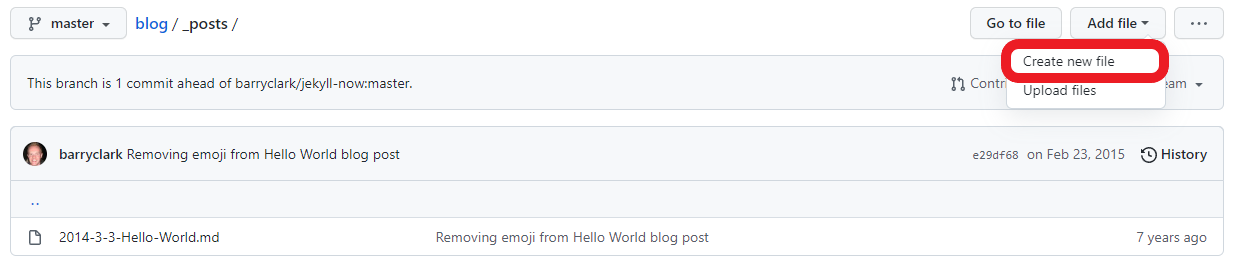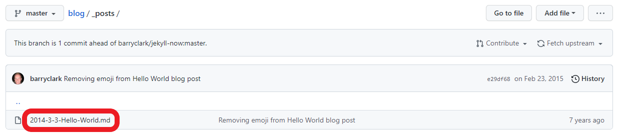 You will see a single file in this directory named 2014-3-3-Hello-World.md, which is a sample blog post included in the repository.