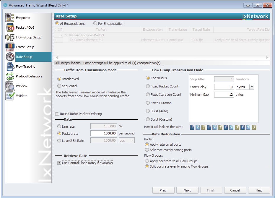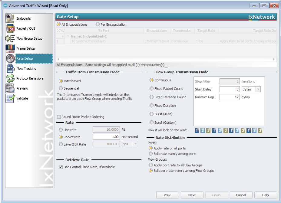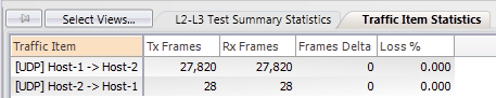 Let’s confirm this by reviewing the statistics for this traffic flow from the traffic generator’s perspective. We don’t see any packet loss: